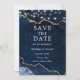 Moderno Elegante Aquarela Azul e Dourado Geode Agato de Marble Salve a Placa de Data com Luzes de String - Foto de Volta