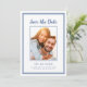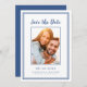 Moderno e simples: Salvar o design de fotograma de data apresenta sua imagem de noivado favorita emoldurada por um quadro azul-chic em um fundo branco nítido. Personalize e compartilhe seus detalhes de noivado e casamento com seus convidados em letras e scripts AZUL CLÁSSICO. O design é completado com um quadro duplo moderno em azul. A parte traseira do cartão é azul estável.(Para melhor posicionamento da sua imagem, use uma ferramenta de edição de fotos para centralizar e recortar ANTES de carregar no site do Zazzle.) Este design de configuração de retrato (altura é maior que largura) funciona perfeitamente com fotos de perto e fotos retangulares do seu cheio e do seu noivo. Escolha seu favorito! Entre em contato com invitationsuites@gmail.com com perguntas ou solicitações personalizadas.