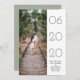 Foto digitalizada no lado elegante Salve o aviso de data com um simples e moderno design de retângulo justificado à direita em branco. Adicione uma foto e seus detalhes de casamento para personalizar. A cor de fundo no verso do convite pode ser alterada para complementar a foto ou para adicionar a cor do seu casamento.