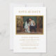 Salve a data! Anuncie o seu casamento em estilo com estes simples e elegantes cartões verticais, salve os cartões de anúncio de data que contêm a sua fotografia e texto de noivado horizontal favoritos que podem ser personalizados com todos os detalhes importantes. Um design moderno, limpo e eterno. O ouro antigo e as cores brancas podem ser personalizados para coordenar com sua foto de noivado ou esquema de cor de casamento.