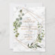 Moderno e moderno, este bonito casamento Save the Date Card design apresenta um falso geométrico de cobre embelezado com a cor d'água eucalipto verde, sobre uma textura falsa de latido de mármore branco. A parte traseira da placa apresenta sua foto favorita do noivado. Parte de uma suíte de casamento. Copyright Elegant Invites, todos os direitos reservados.