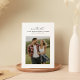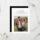Simples, mínimo e chique, esta foto vertical salvando a data é a maneira perfeita de anunciar seu noivado e o próximo casamento para amigos e familiares. O script moderno "salvar a data" fica acima do seu tipo personalizado com bastante espaço para nomes, data de casamento, local do evento e quaisquer outras informações que você gostaria de compartilhar como um site. A parte de trás é um preto que combina com um padrão branco de traços.