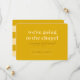 Esse cartão de data, moderno e ousado, contém uma combinação de fontes de sif e script em negrito em um fundo colorido de mostarda de tendência. Tem muito espaço para seus nomes, data e local do seu próximo casamento.