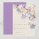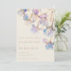 Este elegante cartão de data é perfeito para casamentos de primavera e verão. Este design apresenta um anel de irisões de aquarela em tons de lilás e azul-piscadela. Toques sutis de ouro acrescentam um elemento mágico e brilhante.