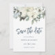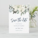 Este elegante cartão 'Salvar a Data' apresenta flores de aquarela com folhagem verde esmagadora. Personalize com seus próprios detalhes.