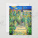 Cartão com a pintura a óleo de Claude Monet O Jardim do Artista em Vétheuil (1880). Os girassóis e outras lindas flores azuis e vermelhas fazem um percurso no jardim onde as crianças estão dando um passeio agradável. Um presente de excelente para fãs do impressionismo e da arte francesa.