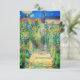 Cartão com a pintura a óleo de Claude Monet O Jardim do Artista em Vétheuil (1880). Os girassóis e outras lindas flores azuis e vermelhas fazem um percurso no jardim onde as crianças estão dando um passeio agradável. Um presente de excelente para fãs do impressionismo e da arte francesa.