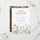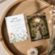 Este design apresenta uma fileira de delicadas flores silvestres em aquarela. Perfeito para casamentos de jardim de verão.