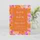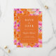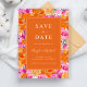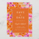 Anuncie seu grande dia com este vibrante casamento cor-de-rosa e laranja no jardim de verão, salve a data, disponível tanto como um convite impresso e um download digital instantâneo. Apresentando designs florais de cor d'água em cor rosa brilhante e laranja, é perfeito para casais que buscam uma vibração divertida, moderna e intensa. Com seu colorido tema botânico primavera, esse único salvamento da data é uma maneira alegre de dar o tom para o seu grande dia. Perfeito para um rosa e laranja, salve a comemoração da data!