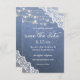 Mande um cartão de identidade para que seus convidados estejam prontos para comemorar seu casamento ou festa com este jean azul, renda e cordas leves do país floral salve o cartão de data. no jean faux