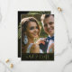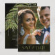 Evoque uma noite de verão moderna nos trópicos, com joias em cascata de folhas de palma enrugadas de diamante ou elimine as camadas de joias para um olhar um pouco mais conservador. Este conjunto apresenta folhas cinzentas e fundo texturizado em tons de azeitona clara a verde-escura de algas marinhas. O cartão 'Salvar a Data' do casamento mostrado aqui tem uma borda superior de folhas espumantes, uma fonte elegante do Serif com a noiva e a imagem do noivo no reverso. Insira facilmente sua própria foto e detalhes do casamento usando o modelo fornecido. Veja o link de coleção nesta página para ver todos os itens correspondentes neste conjunto bonito ou ID830 de pesquisa para ver opções de cor adicionais para este design.