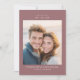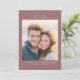 This wedding save the date features a modern and clean design with a central photograph of two individuals on a beach, framed by elegant maroon text blocks. The color palette combines warm tones from the photo with deep maroon accents, creating a rich yet inviting aesthetic. Bold sans-serif typography highlights key details, ensuring clarity and readability while maintaining a stylish look. The layout is balanced and centered, emphasizing simplicity and focus on the heartfelt moment captured in the image. Perfect for setting the tone for a joyous celebration, this design conveys warmth and anticipation.