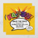 Personalize com seus nomes e detalhes para anunciar a data do seu evento especial. Tema de arte pop de história em quadrinhos moderno, design retrô divertido, perfeito para casamentos, chá de noiva, chá de bebê, batizados, festas de noivado, celebrações de aniversário, formaturas, festa de aniversário e outros eventos especiais ao longo do ano! Um design legal, moderno e divertido que dá um up no seu dia. Criado por ComicBookPop© em www.zazzle.com/comicbookpop*