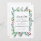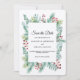 Defina o tom da sua celebração de inverno aconchegante com este cartão Save the Date rústico com fundo de papel kraft, ramos de pinheiro em aquarela, frutos vermelhos e folhagens perenes. Um design encantador para casamentos de Natal, cerimônias na floresta ou celebrações rústicas de inverno. Personalizado sem esforço com seus nomes, data e local do casamento.