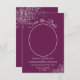 Estas belas cartas são uma forma excelente de deixar seus amigos e família saberem salvar a data do seu próximo casamento. Eles apresentam um elegante design de cor magenta, morango ou cassis roxa com sua foto em um quadro em forma oval cercado por colheres de rendas de cinza prateada e letras de rico com seus nomes, data do casamento e local. O verso tem um gráfico bonito de "lápis nós in" com espaço para uma nota que pode incluir um site onde seus convidados podem obter mais informações.