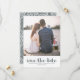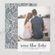 Casamento romântico e moderno de renda salve o cartão de data em uma elegante cinza azul e paleta branca. Simplesmente adicione suas informações e fotos favoritas para fazer deste belo design.
