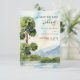 Casamento do Lago Evergreen Watercolor salve a data com sua própria foto, um lado, e paisagem cênica idílica no outro. Paisagem com árvores verdes e verdes, montanhas azuis e um lago ainda sob um céu azul claro. A design está em tons de azul empoeirado, marrom-reluzente e verde e é escrita com elegância e tipografia moderna. Por favor, procure na minha coleção Lake Evergreen itens correspondentes ou envie-me uma mensagem para criar os modelos de que necessita.
