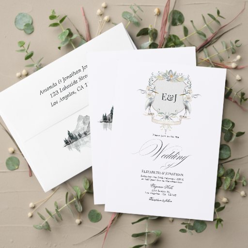 Patos de Lakeside guardam o monograma do casamento, guardem o cartão de encontro em azul pastel e verde sábio personalizável para suas especificidades.