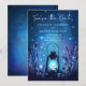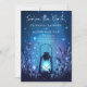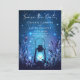 Anuncie a data do seu casamento com este cartão de save the date personalizável. Ele apresenta uma cena caprichosa de uma lanterna antiga e vagalumes. Este anúncio de save the date caprichoso é perfeito para qualquer tema ou estação de casamento.