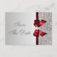 Reserve A Data Lantejoulas Prateadas, Laço Vermelho & Diamante Sa