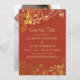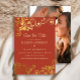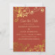 Data de casamento laranja queimada escura acentuada com espirais e floreios dourados elegantes e divertidos. Personalizado com suas informações na frente e sua foto no verso. Entre em contato comigo para obter ajuda com suas personalizações ou para solicitar produtos Zazzle adicionais correspondentes ou coordenados para suas ocasiões especiais. A cor de fundo deste cartão é personalizável quando você usa a ferramenta de design Zazzle, permitindo que você a altere para qualquer cor que desejar para combinar com as cores do seu casamento. Compre este cartão impresso e/ou em formato digital para que possa compartilhar com amigos e familiares por e-mail e redes sociais.
