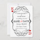 Ótimo para o casamento ou outra celebração com tema Casino/Las Vegas/Monte Carlo. Uma maneira totalmente única e original de informar a data aos amigos e familiares! Também pode ser usado como anúncio após a cerimônia. Por favor, personalize com as iniciais do noivo e da noiva, seu próprio texto, sua foto favorita ou clique no botão "Personalizar" para acessar a ferramenta de design, onde você pode adicionar texto, alterar a fonte, o tamanho e a cor do texto, o posicionamento do texto e muito mais.