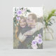 Moderno e moderno, este bonito casamento Guardar os recursos do design do cartão de data foi projetado para mimetizar a aparência de vellum, e apresenta uma geometria dourada embelezada com flores púrpuras de lavanda lilás, verde-aquarela empoeirado e verde-aquarela, e apresenta a tendência da inscrição manual, com sua foto atrás do texto. (Nota: a aparência da camada de velum não é, na verdade, um pedaço de papel translúcido separado, é todo um convite para uma única peça.) Parte de uma suíte de casamento. Copyright Elegant Invites, todos os direitos reservados.