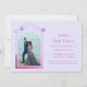 Lavanda mística, cor-de-rosa, Sun Moon Star Space Save As Datas apresentam um sol rosa e roxo, lua e estrelas armadas sobre um fundo de lavanda pastel. Dentro é a sua foto favorita e o seu personalizado salva as informações de data. Personalize editando o texto nas caixas de texto. Projetado para você por ©Evco Studio www.zazzle.com/store/evcostudio