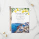 This elegant wedding save the date invitation featuring watercolor lemons and Santorini Greece scene can be personalized with your information in chic typography and all your special photo on the reverse. Designed by Thisisnotme©
