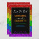 Personalize o convite faux sparkly com seus nomes e informações de casamento. Celebre o seu amor com na moda único na mesma papelaria de casamento de gênero. Bandeja flexível LGBT em brilhos vibrantes vermelhos, laranja, amarelo, verde, azul e roxo vibrantes. *foto de faíscas não é uma falha real!