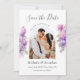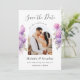 Casamento com Fotografia Cristã Salve a data retrata lindas florais de aquarela de jardim botânico com flores simples lilás. Ele contém fotos, nomes e informações do casal. O verso também mostra uma fotografia junto com a Bíblia Verse Song de Solomon 3:4, "Eu encontrei aquela que minha alma ama." Boa escolha para primavera e casamentos de verão.