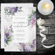 Este adorável cartão de identidade apresenta um lilás delicado com buquês de urze em fundo branco marmoreado e é adequado para muitos tipos de casamentos - de assuntos casuais a mais formais. O convite para casamento multifuncional e o download digital também estão disponíveis.