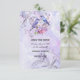 Bela tonalidade de roxo claro 5x7 salvar a data de casamento, com um par de pássaros azuis entre lilases roxos e rosados
