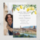 Este elegante convite de casamento para salvar a data, com aquarela de limões e uma cena de Florença, Itália, pode ser personalizado com suas informações em tipografia elegante e todas as suas fotos especiais no verso. Criado por Thisisnotme©