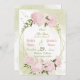 belo romântico, salvem o convite de data com flores bonito cor-de-rosa com algumas folhas verdes em moldura geométrica dourada. São simulados os detalhes do brilho dourado. Para obter mais personalização (altere a fonte ou sua cor ou altere o layout ), clique em personalizar rolando para baixo e clique em (Clique para personalizar mais). PARA MAIS CORRESPONDÊNCIA, clique na coleção acima