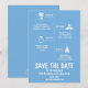 Você é um casal que gosta de coisas diferentes? Isso é perfeito para você! Essa linha do tempo de salvar a data do casamento informal e divertida na cor azul certamente impressionará seus convidados. Para dúvidas sobre alterações de design personalizadas pelo designer independente, por favor, envie um e-mail para paula@labellarue.com ANTES de personalizar ou fazer um pedido.