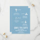 Conte a todos os seus convidados um pouco sobre o seu relacionamento ~ talvez alguns fatos engraçados que eles não sabem! Seus convidados vão adorar este divertido e caprichoso Salve a Data na cor Azul Empoeirado e Branco! Para consultas sobre alterações de design personalizadas pelo designer independente, por favor, envie um e-mail para paula@labellarue.com ANTES de personalizar ou fazer um pedido.