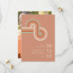 As linhas geométricas da Retro 70 receberam um facelift com fundo bloqueado por cores e esquema de cores contemporâneo, para criar os pedaços desse sorteio de design de casamento. A paleta colorida vai desde a laranja queimada até os tons de terra cotta e a verde-sábio para dar a esse conjunto uma vibração bem tendenciosa. O cartão Salvar data do casamento mostrado aqui apresenta o acima mais uma modelo para adicionar facilmente sua própria foto e informações pertinentes do evento. Procure ID983 para ver todas as peças de coordenação neste conjunto.