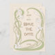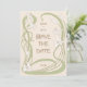 Um cartão de anúncio de casamento com um "art nouveau" inspirou um design, com lírios brancos com folhas verdes, formando uma estrutura orgânica fluindo em um fundo bege. Ambos os lados podem ser personalizados.