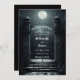 Um velho portão de cemitério assustador com vinhas espinhosas e uma lua de cheio acima, colocou a vibração para este gótico salvar o convite de data. Perfeito para um casamento gótico ou de Halloween.