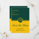 Este convite de casamento elegante verde e dourado é perfeito para um casamento moderno. O design simples apresenta caligrafia verde elegante em um fundo dourado.