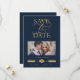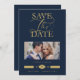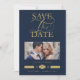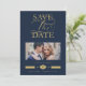 Luxurious Fancy Blue marine Photo Golden Effect Typography Save the Date Card with Envelope.