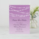 Múltiplos fios de luzes cintilantes num fundo romântico em orquídea radiante, faça este convite suave e romântico com um toque de brilho. Role para baixo para ver a coleção e, se forem necessários itens adicionais nesta coleção, entre em contato conosco em prettyfancyinvites@gmail.com com sua solicitação.