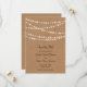 Múltiplas linhas de luz cintilante fazem este convite brilhar. É perfeito para o feriado ou casamento no inverno que usa luzes cintilantes na decoração, no país de verão ou no casamento do celeiro que tem árvores ou lugares iluminados com luzes cintilantes, ou qualquer caso cintilante. Faz parte da linha de cheio das Luzes de Tremor, e está disponível em várias cores. Ele é mostrado no papel básico; no entanto, recomendo o peso e a textura do papel de linho para uma sensação mais rústica.
