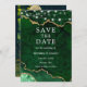 Cartão de Anúncio de Noivado com Luzes de Corda - Fundo de Foto de Geodo de Ágata Mármore Esmeralda Verde e Dourado em Aquarela Moderna e Elegante