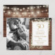 Com delicada vegetação de jardim country em aquarela e lindas luzes de cordão em um fundo de painéis de madeira, este convite de aniversário de casamento rústico e elegante pode ser personalizado com sua foto especial e informações de celebração de 50 anos de aniversário. Criado por Thisisnotme©