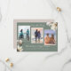Casamento temático sulista salve os cartões de data com três modelos fotográficos. As flores brancas da magnólia meridional decoram os cantos das placas horizontais, cinzas-verdes. Os modelos de fotos são pisados em escada com o mais alto esquerdo um pouco mais baixo do que o centro e a foto direita um pouco mais baixa. As fotos de qualquer uma das orientações funcionarão se o assunto estiver no centro. "Salve a data" no topo, com nomes de cheio, data e local do casamento na parte inferior. As cores correspondem à coleção de papelaria de magnólia do sul. Mostrado nos cartões de tamanho menor.