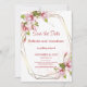 Magnólias com cartão de Moldura de folha de ouro Falso Casamento Rústico Salve o Cartão de Data. O estilo romântico com magnólias é perfeito para um casamento rústico de verão. A moldura geométrica de folha de ouro falso adiciona um toque moderno. O respingo de aquarela complementa a composição e lhe dá um charme especial.