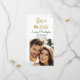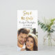 Bote de Script de Folha Ouro com Mão Acondicionada Salve o Cartão com fotos de Data.O cartão com fotos Salvar a Data pode ser alterado para incluir seu nome e foto. Este cartão com fotos tem uma imagem na parte frontal que pode ser substituída.