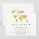 Reserve A Data Mapa Mundial Dourado de Destino Elegante Casamento